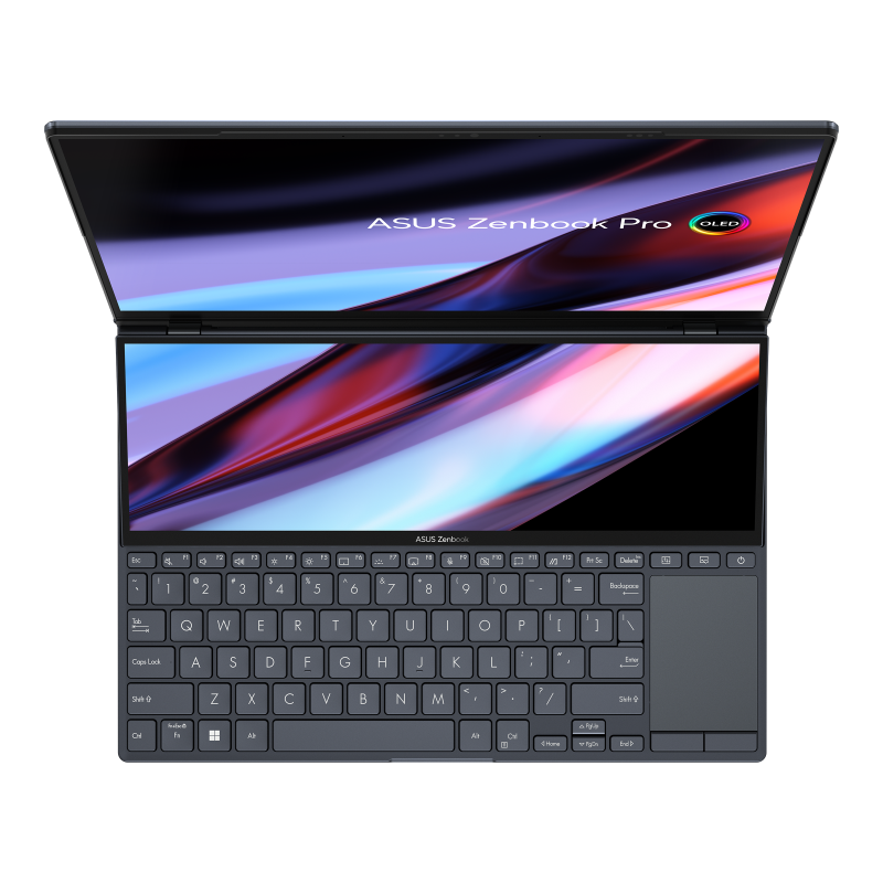 Por otra parte, el Zenbook Pro 14 Duo OLED es prácticamente el equipo por excelencia para productividad y para jugar. Se diferencia diametralmente de los otros tres, por su doble pantalla. Esta situación genera que el teclado se desplace hacia la parte inferior, tal como ocurre con los primeros Zephyrus.