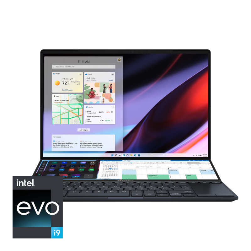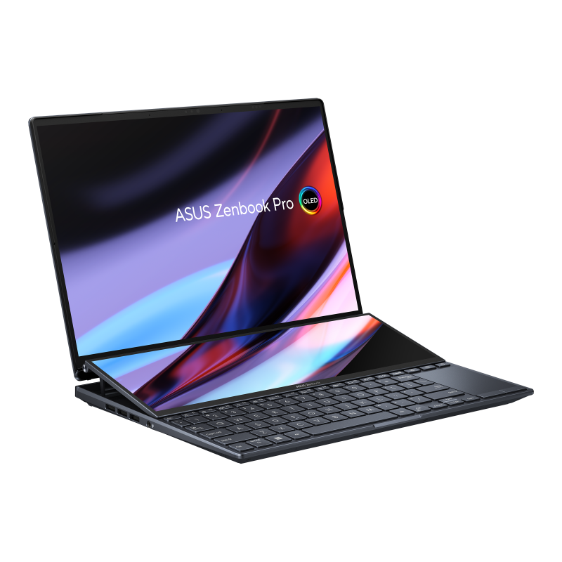 La pantalla principal es de tipo OLED táctil de 14.5 pulgadas con una resolución de 2880x1800p y una tasa de refresco de 120Hz. La pantalla secundaria es inclinable, es táctil de 12.7 pulgadas y con una tasa de refresco igual a la principal.