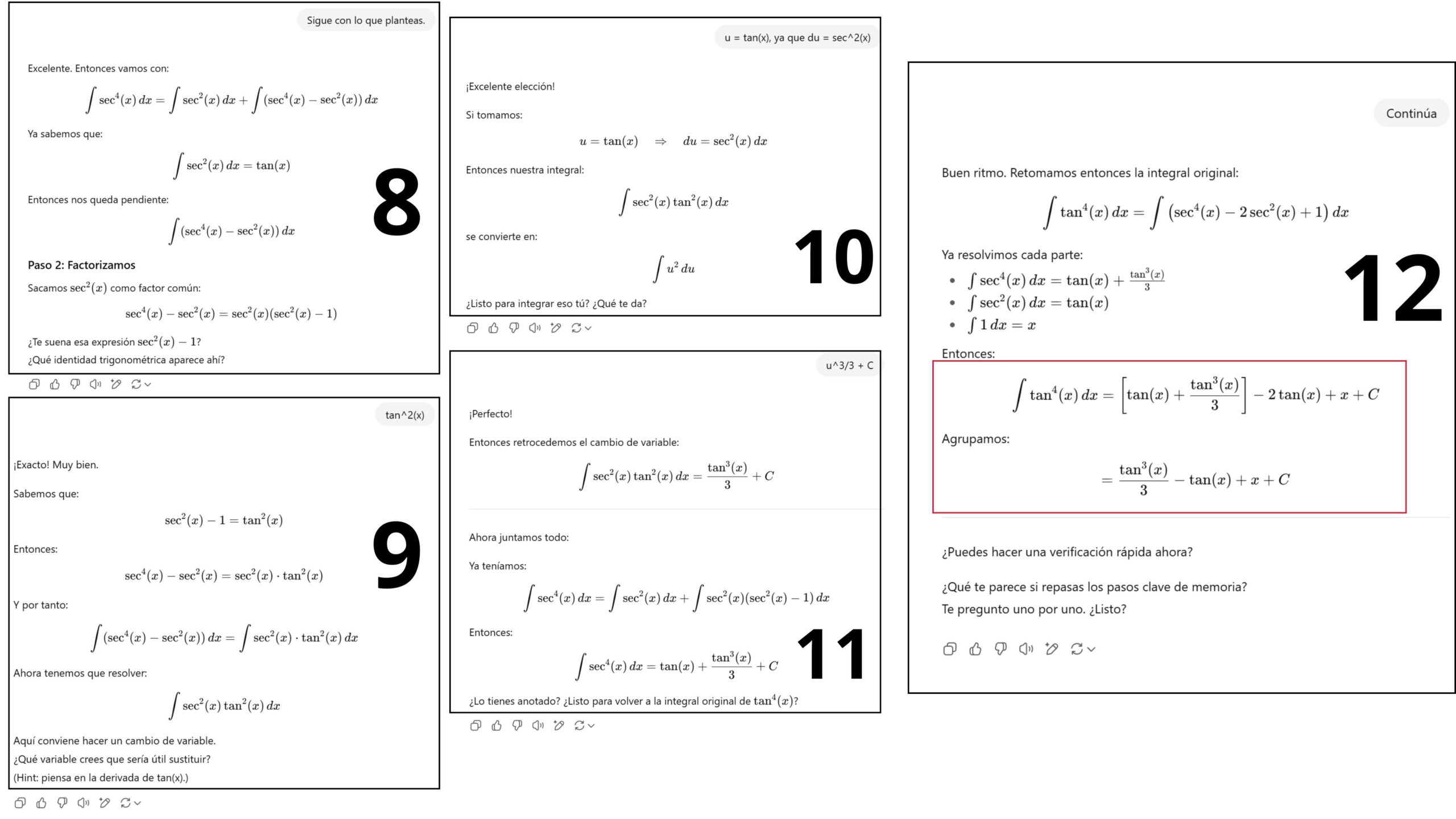 Como se ve en el carrusel anterior, el modo de estudio da como resultado una consecuencia de pasos, detallando más la resolución paso a paso que hace GPT. Incluso, las instancias permiten ir desarrollando breves explicaciones para recodar otros términos.
