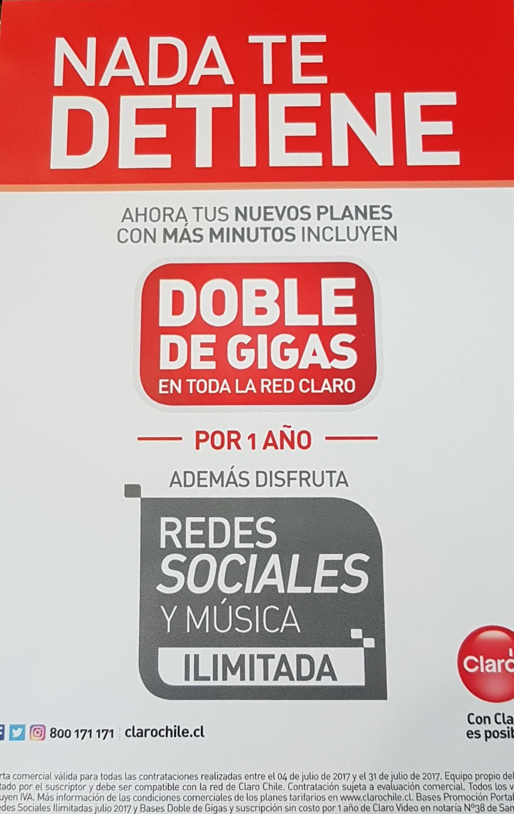 Entre las novedades nos encontraremos con el doble de gigas por un año, más minutos y acceso a redes sociales ilimitado, además de contar con acceso a sus servicios Claro Video y Música.