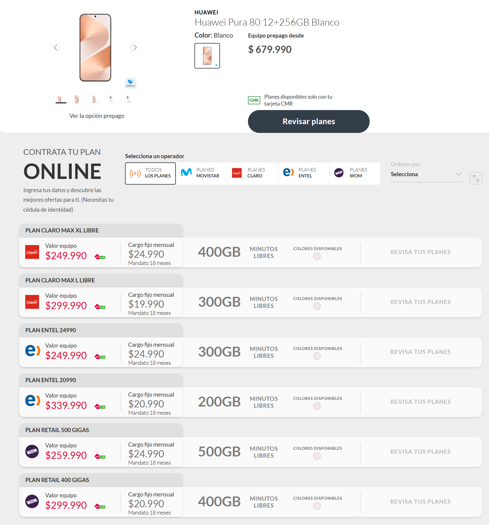 La operadora define qué planes están disponibles y la CMR entra después en la compra del equipo