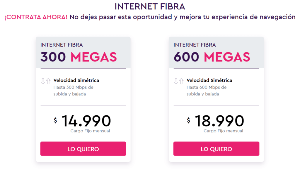 El día de hoy el servicio ha dejado su estado beta, ya que cuenta con factibilidad en varias comunas de la Región Metropolitana y varios clientes disfrutando del servicio. De hecho, en su web oficial ya podemos ver la opción «Internet Fibra» al lado de los servicios tradicionales «Planes», «Prepago», «Internet móvil» y «Equipos», dejando de estar escondida al final del sitio.