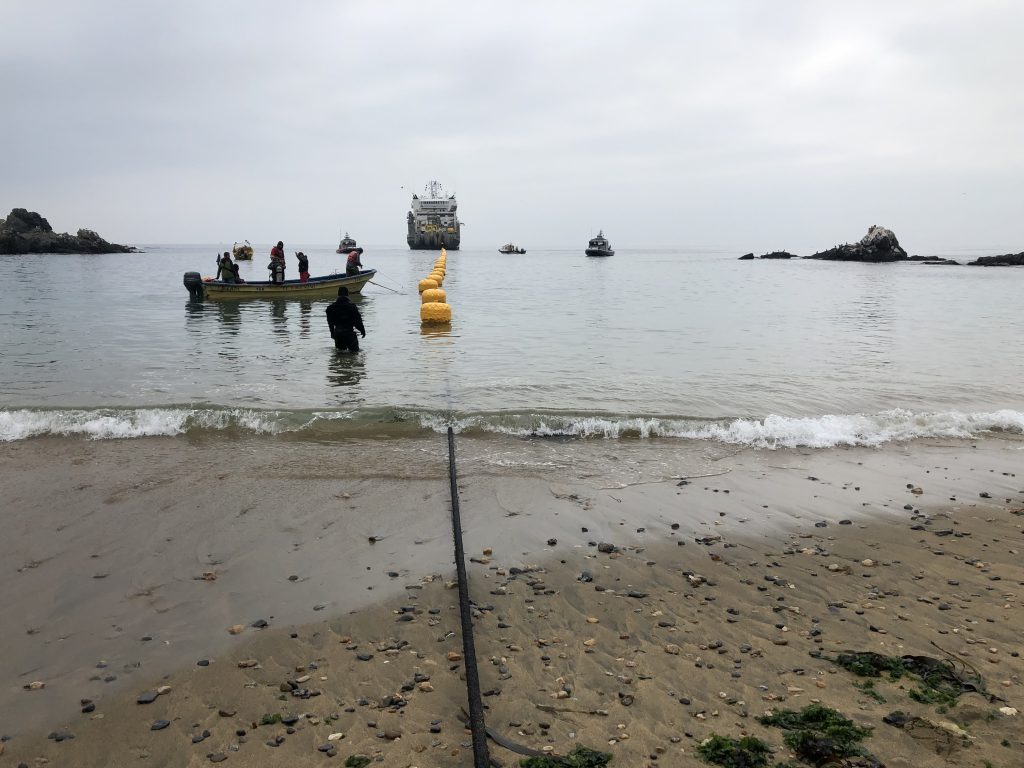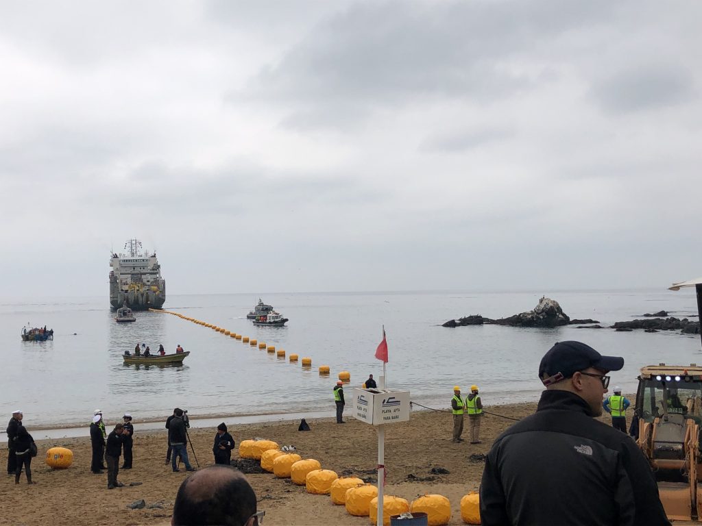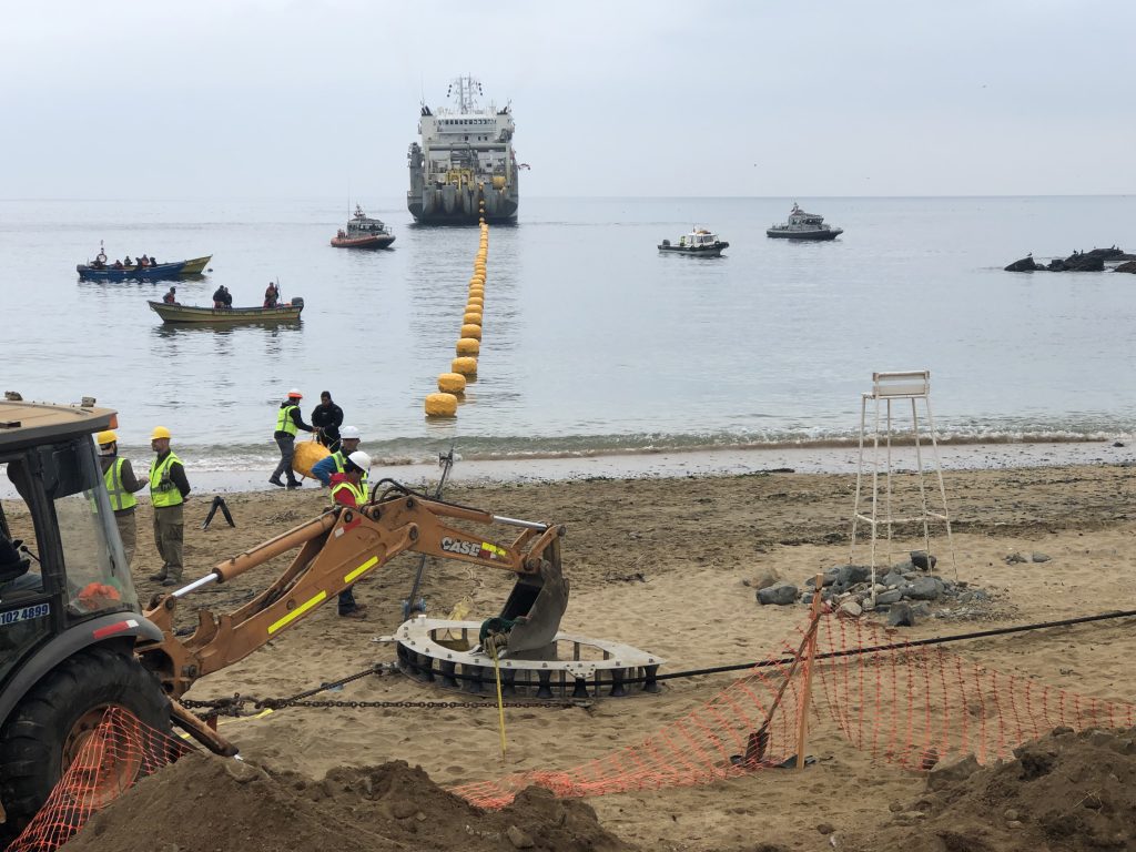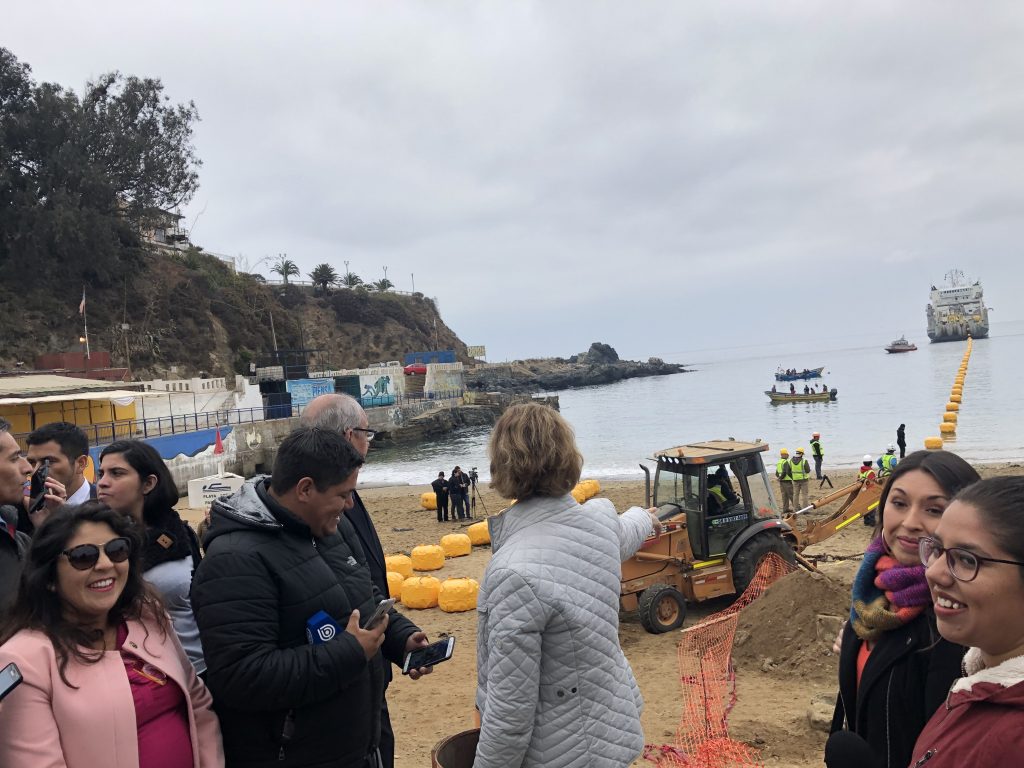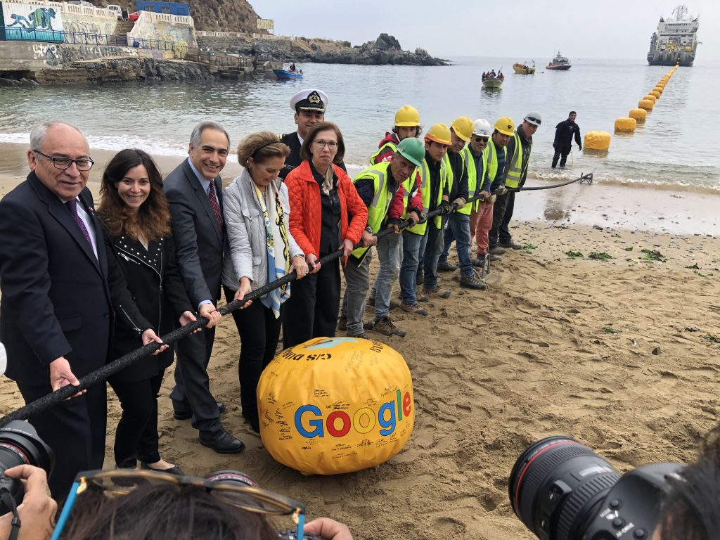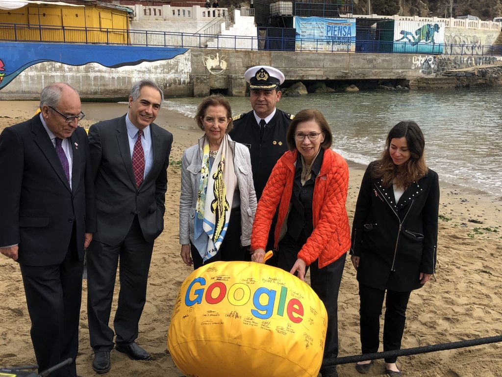 En el lugar, la autoridad dio el vamos al punto de anclaje terrestre del cable de fibra óptica submarino que espera unir directamente Chile con California. Curie, fue anunciado en enero de 2018, junto a otros dos proyectos de la compañía que busca extender su red de cables submarinos.