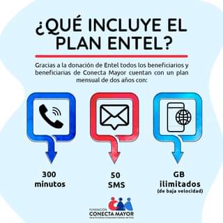 El plan entregado por Entel tiene un beneficio por dos años, en que a cada usuario le entrega 300 minutos para llamadas, 50 mensajes de texto y navegación de internet ilimitada de baja velocidad: