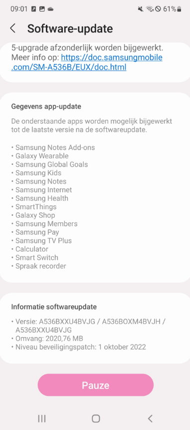 El número de versión de firmware es A536BXXU4BVJG. Viene incluido el parche de seguridad de Android del mes de octubre.