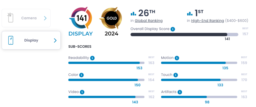 Tal como podemos ver en el portal, el Galaxy A55 se queda con el primer lugar del mercado en su segmento de precios. Esto no sorprende para nada, pues no debería ser sorpresa que Samsung siempre destaca por sus paneles.