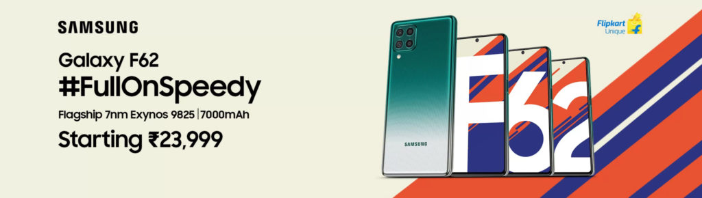 El nuevo Samsung Galaxy F62 viene en colores Laser Green, Laser Grey y Laser Blue y ya puede reservarse en la tienda Flipkart en India, en el sitio web de Samsung de allí, en Reliance Digital y la tienda web de Jio. La surcoreana aún no informó de la expansión oficial de este teléfono a más mercados, por lo que tenemos sus precios en moneda india: