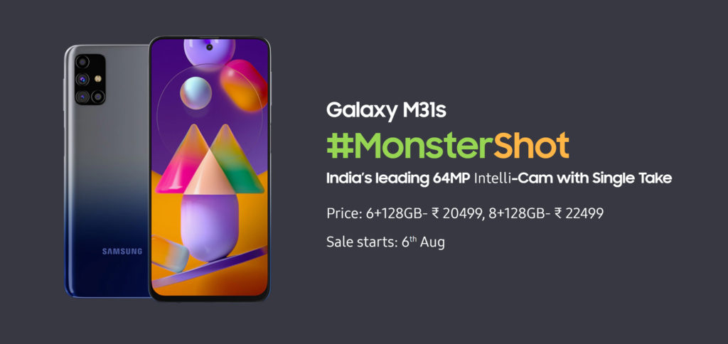 El Samsung Galaxy M31s viene en colores Mirage Black y Mirage Blue, ambos con tonos degradados. Estará disponible desde el 6 de agosto próximo en Amazon India y en la web oficial de Samsung de aquel país. Sus precios quedan así: