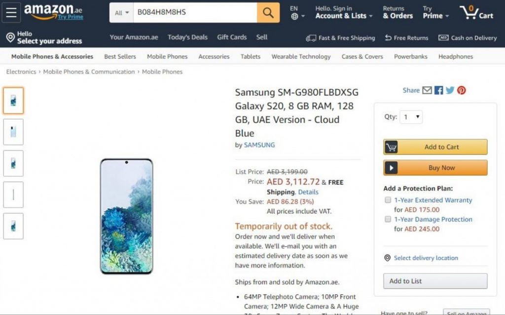 La imagen superior a estas líneas es una captura de pantalla hecha a una publicación de Amazon referida al S20 (el común). Si uno intenta acceder — al menos al momento de estar redactando este post — se encontrará con un error al cargar. Pero es inevitable que no falten aquellos rápidos que dejen constancia de lo sucedido.