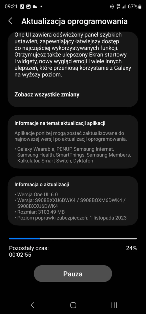 Los afortunados usuarios son todos de Europa. La actualización es la versión DWK4 y viene con los parches de seguridad de noviembre de 2023. Como se trata de una actualización importante de versión de Android, tiene un tamaño de 3,1 GB.