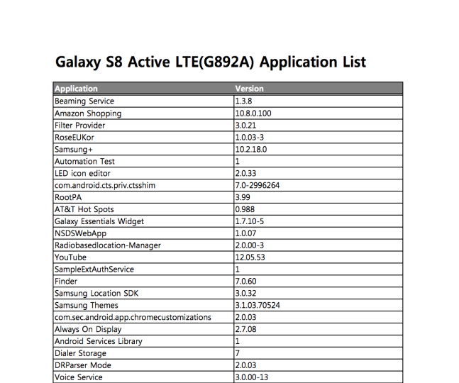 Samsung Galaxy S8 Active SM-G892A mentioned on Samsung's website: https://t.co/spMSFkRjXJ / App list: (PDF) https://t.co/J6eJLfLV9q