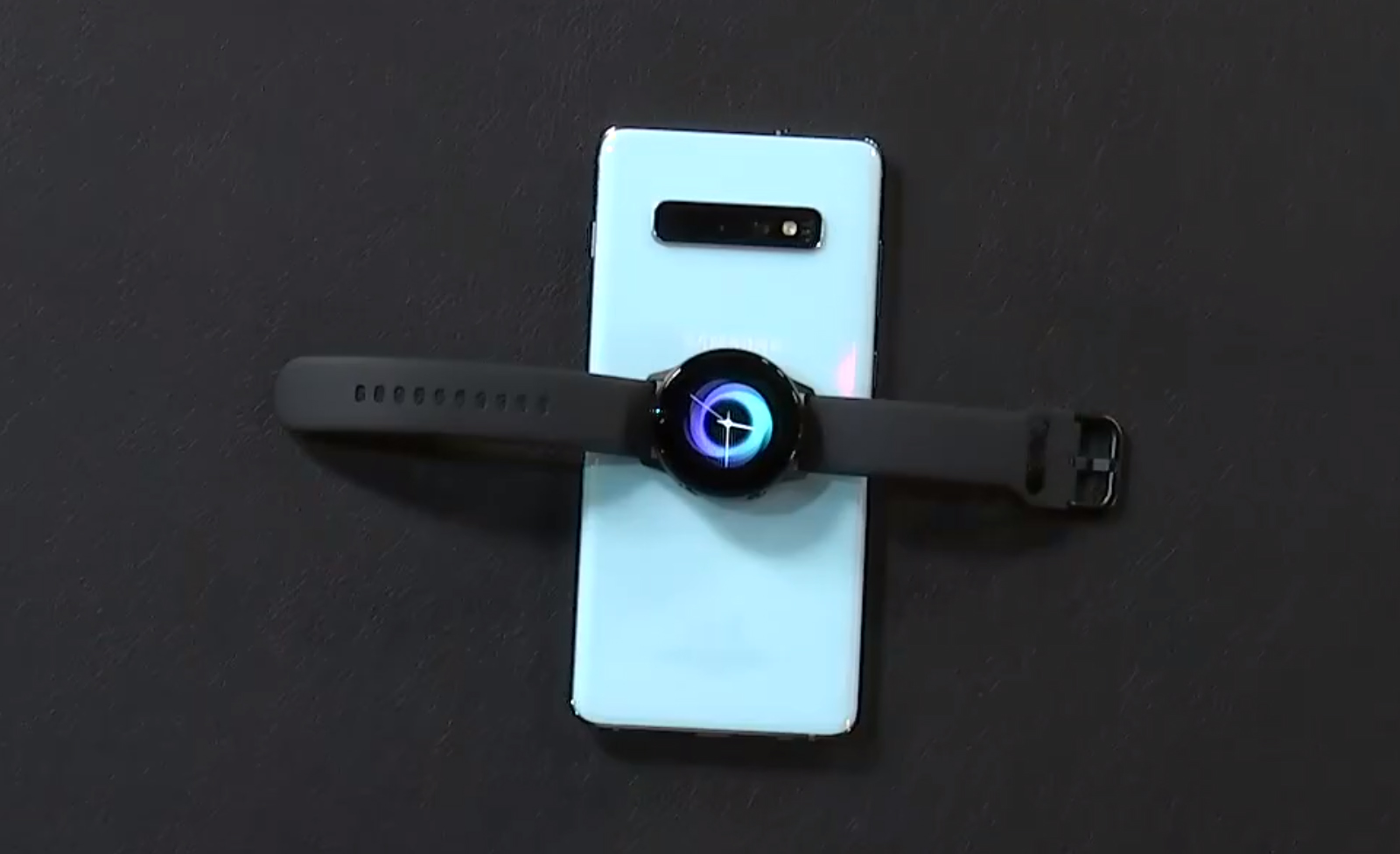 Para sorpresa de varios, en medio de la presentación Samsung demostró que será posible cargar este accesorio de muñeca por medio de los nuevos Galaxy S10.
