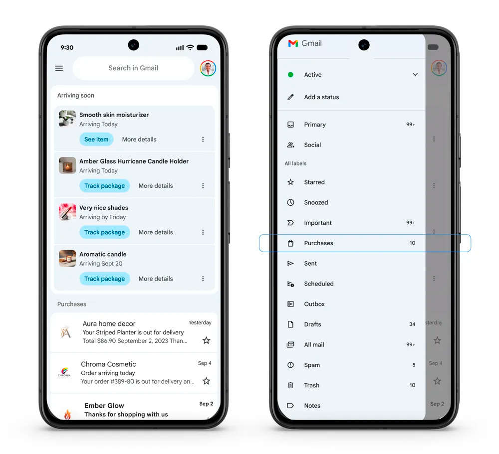Una nueva vista agrupa todas las actualizaciones de tus «Compras» (Purchases). Dicha característica pone en un solo lugar la información de seguimiento. Se tiene un panorama completo de todos los paquetes. De igual forma, se mantienen las notificaciones en la bandeja de entrada principal.