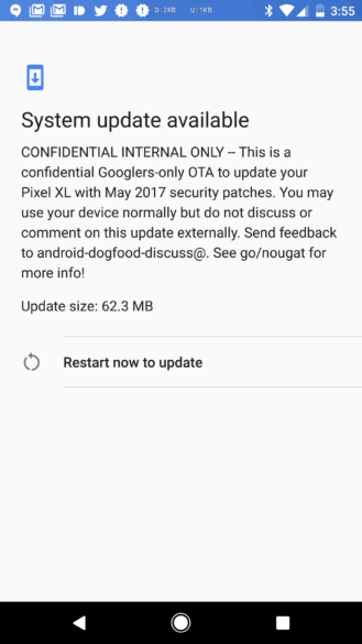 ¡Ups! Al parecer alguien en Google acaba de presionar el botón incorrecto. Algunos usuarios de Pixel XL están recibiendo una actualización que claramente no estaba destinada para ellos. Así lo han reportado a Android Police, donde además han adjuntado una captura de la OTA.