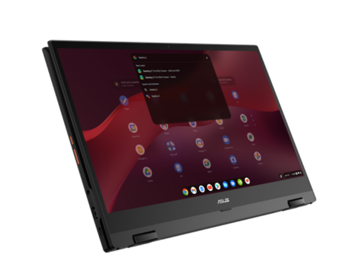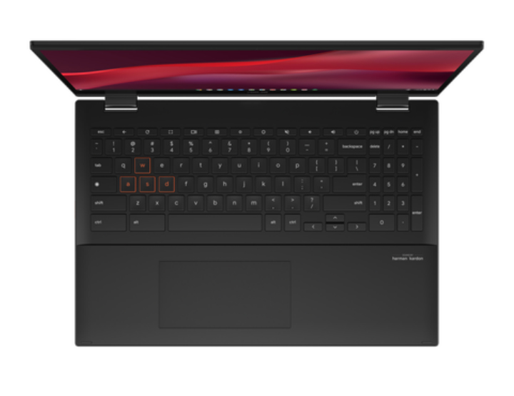 Aquí estamos ante un dispositivo particular: Chromebook y 2-en-1 a la vez. Su pantalla tiene tecnología NanoEdge Full HD de 15,6 pulgadas y tasa de refresco a 144 Hz. Presenta un teclado retroiluminado Chiclet Anti-ghosting sin ser RGB.