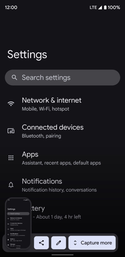 Entre las novedades más notables para los usuarios se encuentran la llegada de las capturas de pantallas deslizables, función que ya poseen muchos fabricantes, pero que ahora llega de forma oficial a Android junto a su respectiva API para desarrolladores; así como un nuevo sistema de autorotación de pantalla que utiliza la posición de tu cara para determinar la rotación y de esta forma, la pantalla no rotará si miras el teléfono acostado de lado.