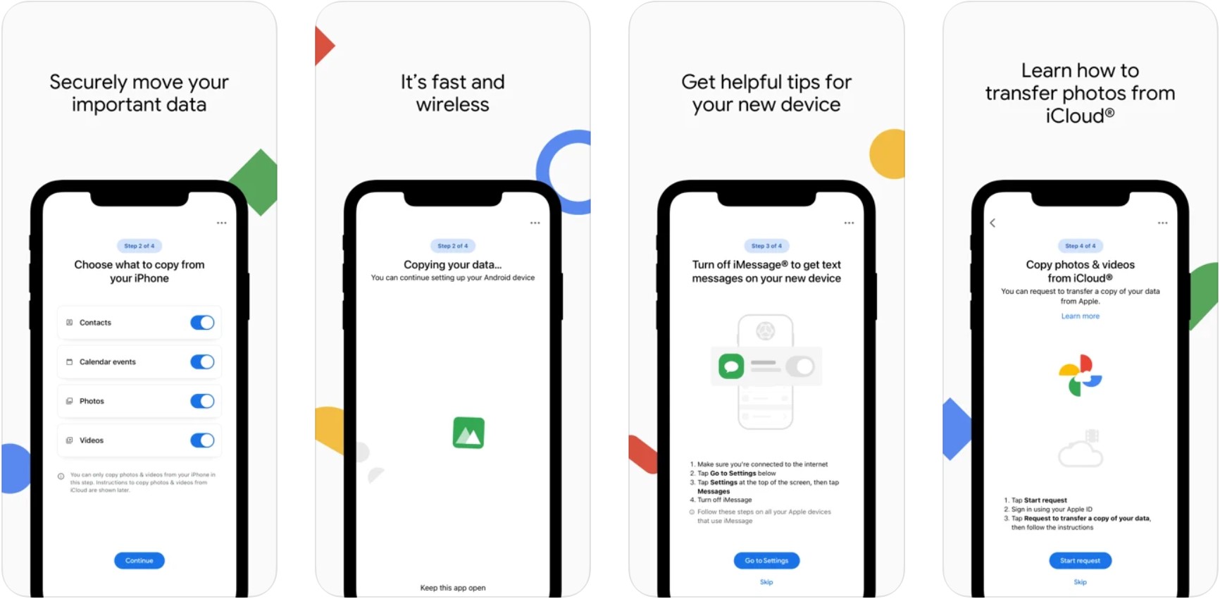 Tal y como señalan en MacRumors, la aplicación permitirá a los usuarios de iPhone transferir sus fotos, videos, contactos, eventos de calendario, entre otros hacia tu nuevo Android. De hecho, la app también te da indicaciones para desactivar iMessage, mover contenido desde iCloud, etc.