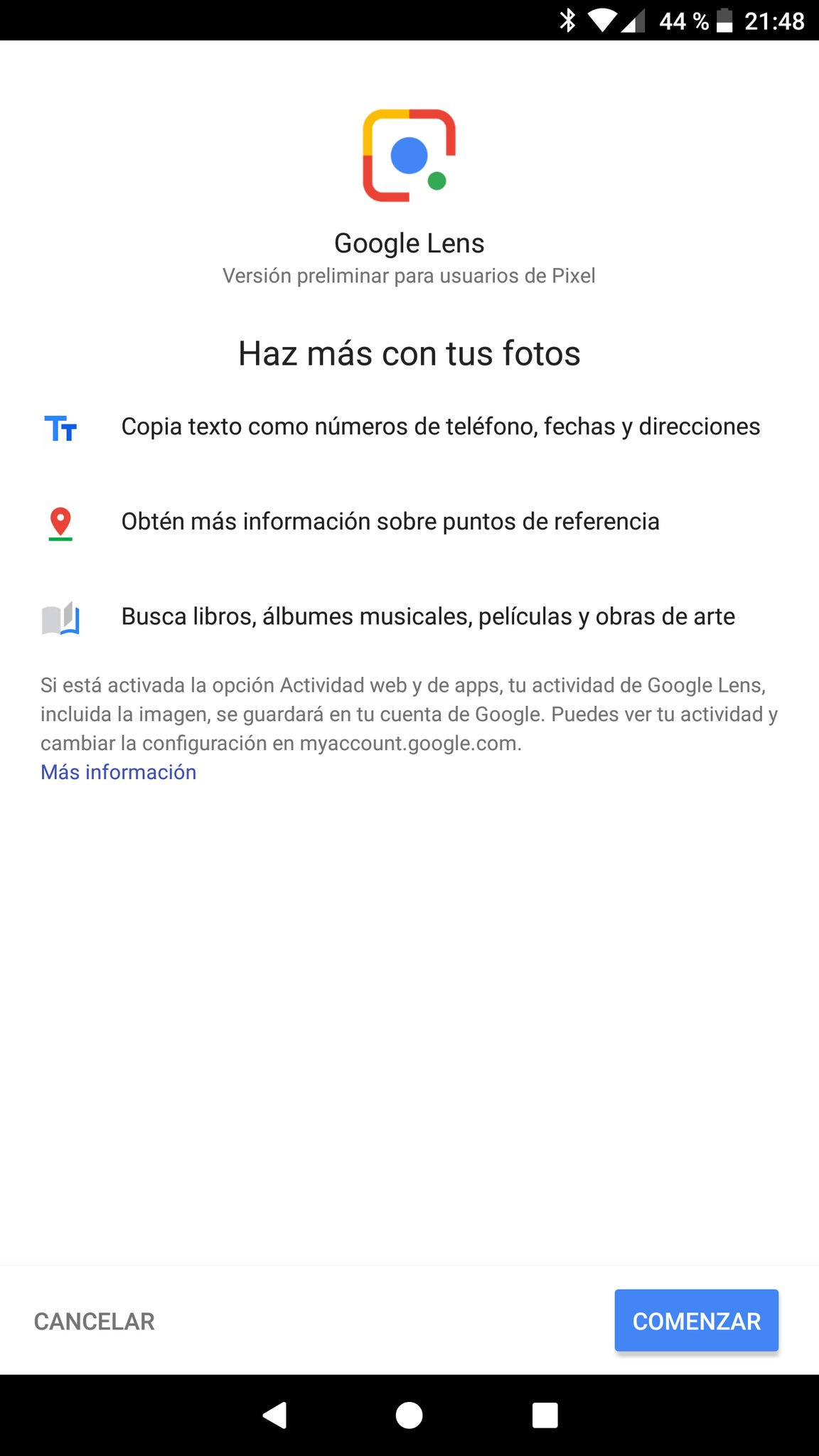 Gracias a las imágenes de uno de nuestros lectores, Ignacio Clavijo, podemos ver que el icono correspondiente a Lens aparece en la parte inferior de la aplicación. Una vez presionado, entregará más información sobre lo que hay en la imagen.