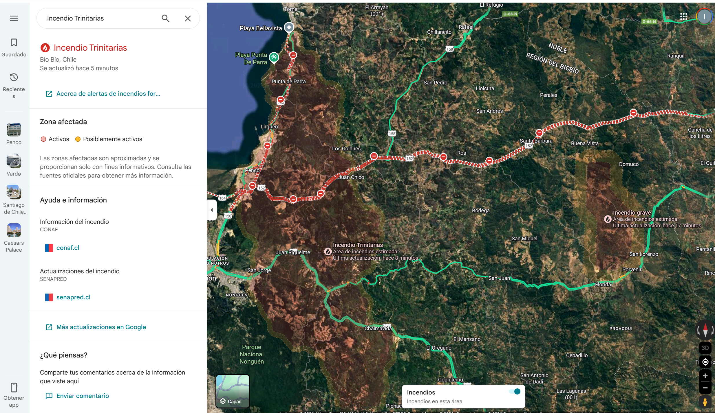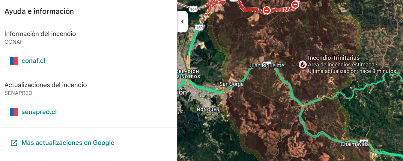 En medio de la emergencia que afecta a los incendios en Biobío y Ñuble en Chile, el acceso a información resulta ser en extremo crítico para la seguridad. Google ha recordado la disponibilidad de sus herramientas de visualización de datos en tiempo real.