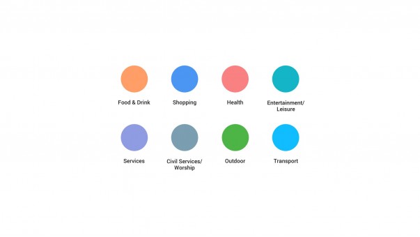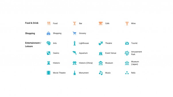 La paleta de colores y los iconos también han sido actualizados, los cuales ahora permitirán reconocer de mejor manera ciertos puntos de interés, pues ahora cada uno tendrá un color que lo diferenciará del otro; naranjo para los locales de comida y bebidas, rojo para salud, azul para las tiendas, y así.