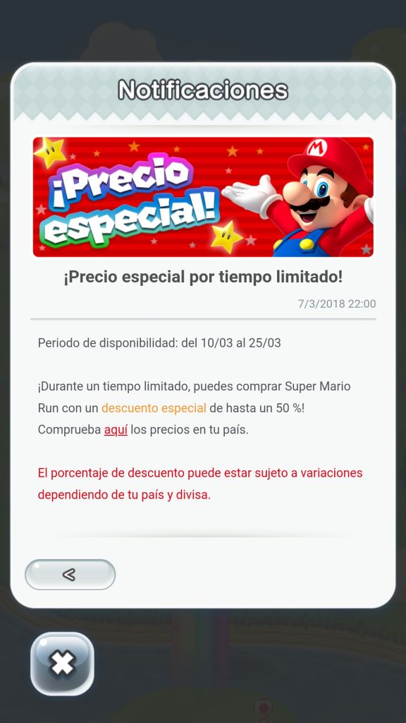 Por tiempo limitado, desde mañana hasta el 25 de este mes, el juego Super Mario Run tendrá un precio promocional para celebrar el Mario Day.