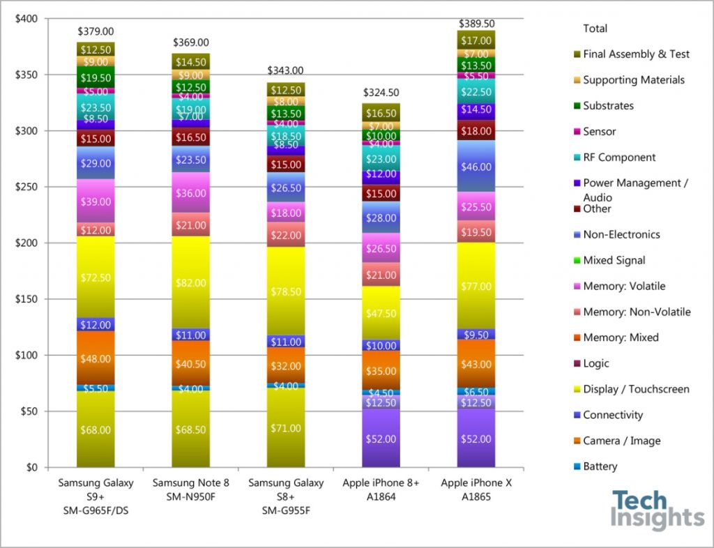 Sorprendentemente, el costo de este equipo sigue siendo más bajo que el de un iPhone X, que cuesta USD $389 para hacerse, pero que dan a entender que los costos actuales de los flagship no son tan altos como muchos podrían haber creído.