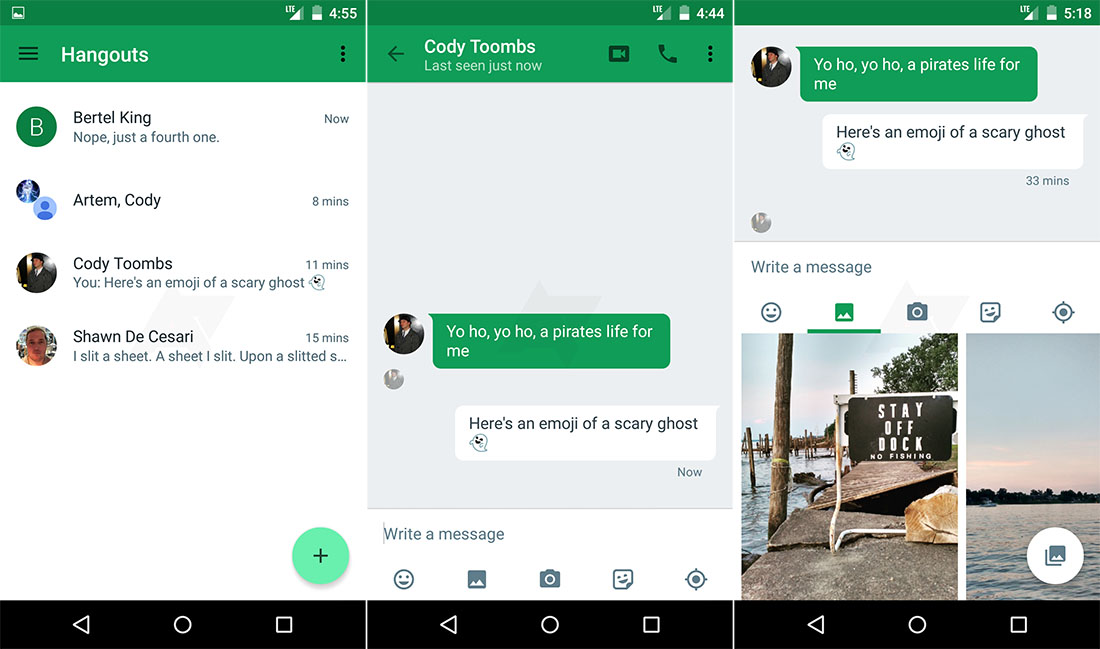 Una vez iniciada la conversación, se destacan los atajos en una barra inferior para facilitarnos el envío de emojis, fotos, videos, stickers, compartir la ubicación e incluso cambiar nuestro estado de forma más simple. Debo reconocer que es bastante similar a lo que se ve en Facebook Messenger. Finalmente, se espera que la nueva versión de Google Hangouts 4.0 esté disponible más pronto de lo que creemos, los rumores indican éste mes, pero no tenemos una fecha concreta.