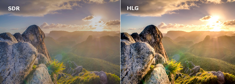 La BBC y NHK crearon este formato gratuito compatible con televisores SDR, facilitando su uso en emisiones en vivo. Sin embargo, no alcanza la calidad de HDR10 o Dolby Vision, especialmente en escenas oscuras, y aún cuenta con poco contenido disponible.