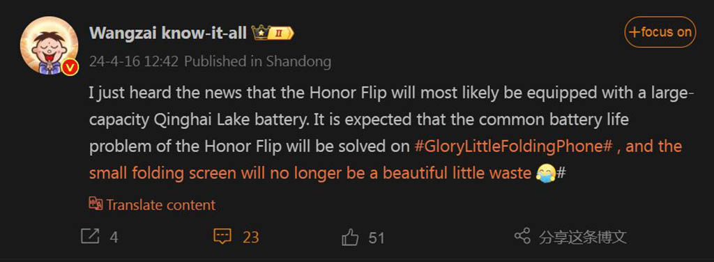 Según podemos ver en Weibo, un insider dice que la batería del Magic Flip podría ser mejorada. Incluso, se atreve a decir que la misma será del tipo Qinghai Lake. Con esto, se arreglaría el problema de la pobre batería de este tipo de dispositivos.