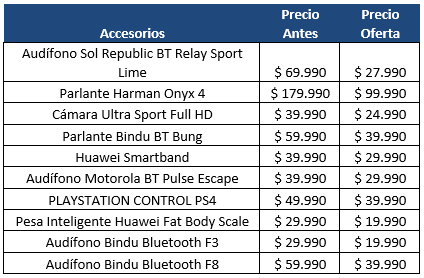 Hasta el 31 de mayo estará presente «Entel Black» en donde encontrarás hasta un 60% de descuento en variados smartphones de fabricantes como Huawei, Motorola, Sony, Nokia, Öwn y LG. Además hay 10 accesorios de PlayStation, JBL y Harman Kardon, entre otras.
