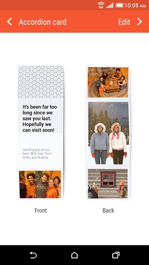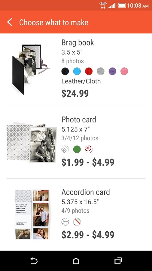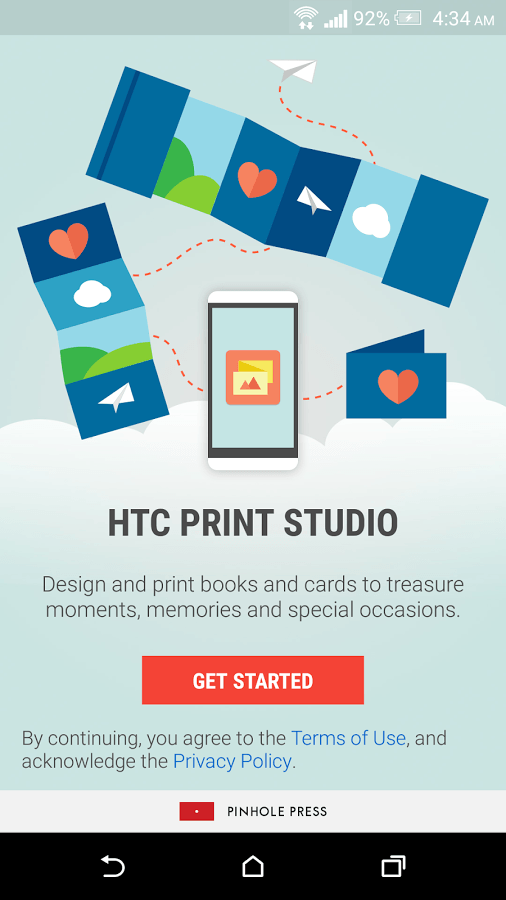 Luego, HTC ha publicado Print Studio. Esta aplicación permite editar nuestras imágenes y luego agregarlas a un álbum fotográfico o tarjetas. Posteriormente podrás mandar a imprimir tu producción a alguno de los asociados de HTC alrededor del mundo, por ahora solo está anunciado Pinhole Press y no sabemos si efectivamente este servicio esté disponible en Chile para un futuro.