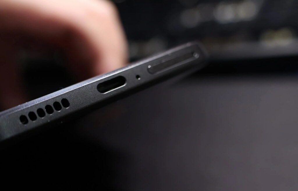 En el borde inferior habría varios elementos. Dirían presente la rejilla altavoz y el conector USB-C. También asomarían el micrófono principal y el slot para tarjeta SIM.