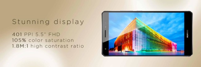 El dispositivo sigue la misma línea de los anteriores modelos de Huawei, tiene una construcción muy elegante, con un marco completo hecho de aluminio. Presume cámaras de 13 y 8 megapíxeles, trasera y frontal respectivamente. La cámara frontal está ayudada por un sutil flash LED. El equipo en su totalidad está potenciado por un procesador HiSilicon Kirin 935 de 8 núcleos (4 a 1.5 GHz y otros 4 a 2.2 GHz), es movido por 3GB de RAM, en almacenamiento hay versiones de 32 y 64GB. Se rumorea que una versión de 128GB sería presentada más adelante.
