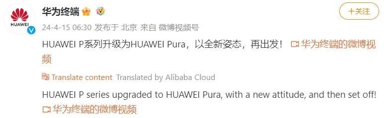 Ha sido la misma empresa en Weibo la que ha confirmado la noticia. En el post se menciona que la serie HUAWEI P ha sido «actualizada» a la HUAWEI Pura, y que con este se completa una «nueva actitud» para la serie.