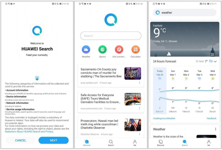 Un usuario de Reddit dice tener acceso a la beta de Huawei Search y ha compartido capturas de pantalla proveniente desde su Mate 30. En ellas podemos apreciar que también podemos realizar búsquedas, hay noticias de interés y acceso directo a datos del clima, prácticamente lo mismo que con Google.