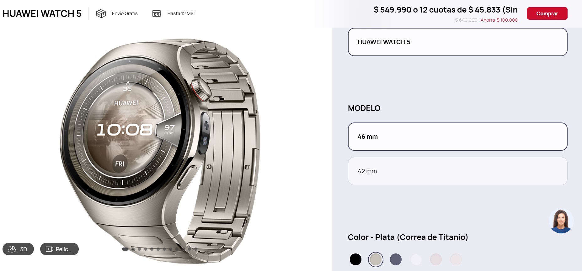 - HUAWEI WATCH FIT 4: CLP $129.990