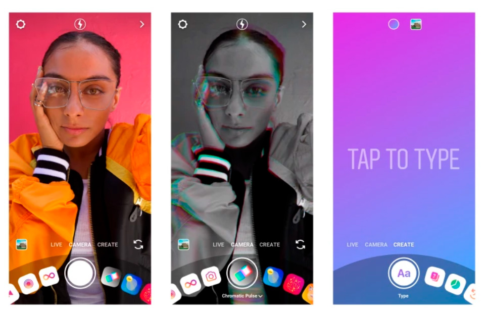 Ahora podrás seleccionar diversos tipos de cámaras como: en Directo, la Cámara normal y un modo Creación. Respecto a este último modo, el objetivo está en crear historias sin necesidad de tener un video o una foto previa.