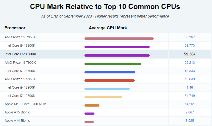 Si bien el lanzamiento comercial del Intel Core Ultra 9-14900KF está previsto para el mes de octubre. Ya aparecieron los primeros benchmarks que lo dejan como el procesador de único núcleo más potente del momento. Según PassMark, el Intel Core Ultra 9-14900KF obtuvo un puntaje de 4.939, casi 200 puntos más que el anterior monarca, también de Intel, el i9-13900KS.