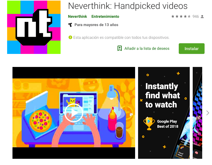 La aplicación Neverthink: Handpicked videos fue elegida la mejor de esta categoría ya que te recomienda el mejor video para que puedas ver. ¿Lo mejor? Las recomendaciones son hechas por un humano quien seleccionará los mejores videos para que veas a continuación. Descárgala AQUÍ