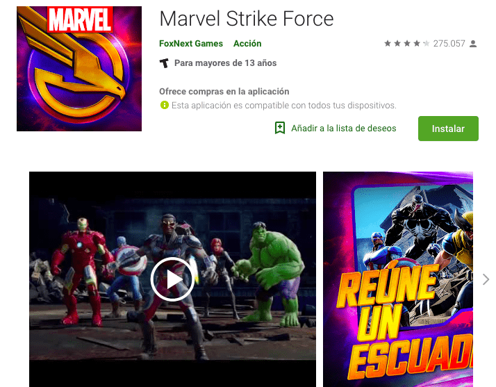 Con todos los personajes de Marvel, el juego Marvel Strike Force fue elegido como el juego más innovador. Este, mezcla acción y gráficos impresionantes. ¿Te gustan los personajes de Marvel? Descarga este juego AQUÍ