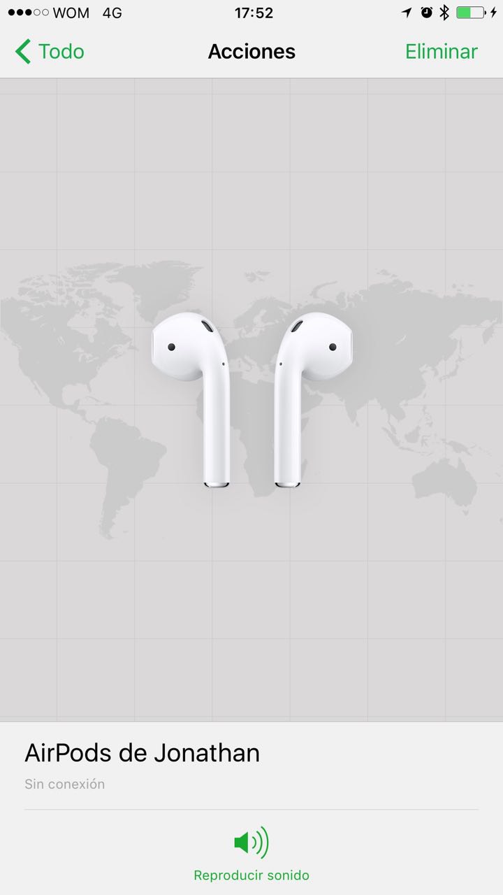 Solo tienes que ejecutar la aplicación «Buscar iPhone» (o descargarla desde la App Store) y en la lista de dispositivos aparecerán tus AirPods (review que puedes leer acá), permitiendo poder encontrarlos cuando se pierden en algún lugar cercano. La app hace que uno o los dos audífonos emitan un sonido para lograr ubicarlos.