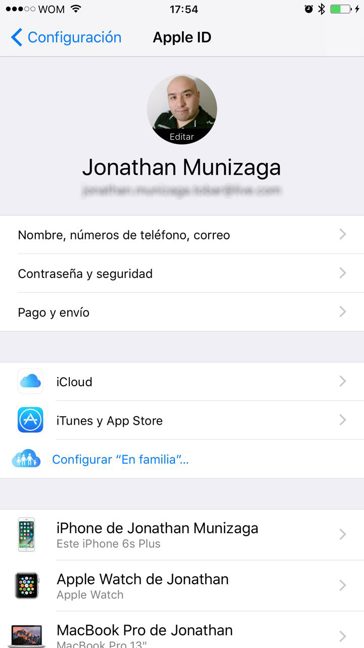 Pero en iOS 10.3 tenemos algunos cambios estéticos, ya que ahora en el menú de ajustes aparecerá en la parte superior tu Apple ID, ofreciéndote ajustes de seguridad, pago… etc, todo lo relacionado con tu cuenta de Apple.