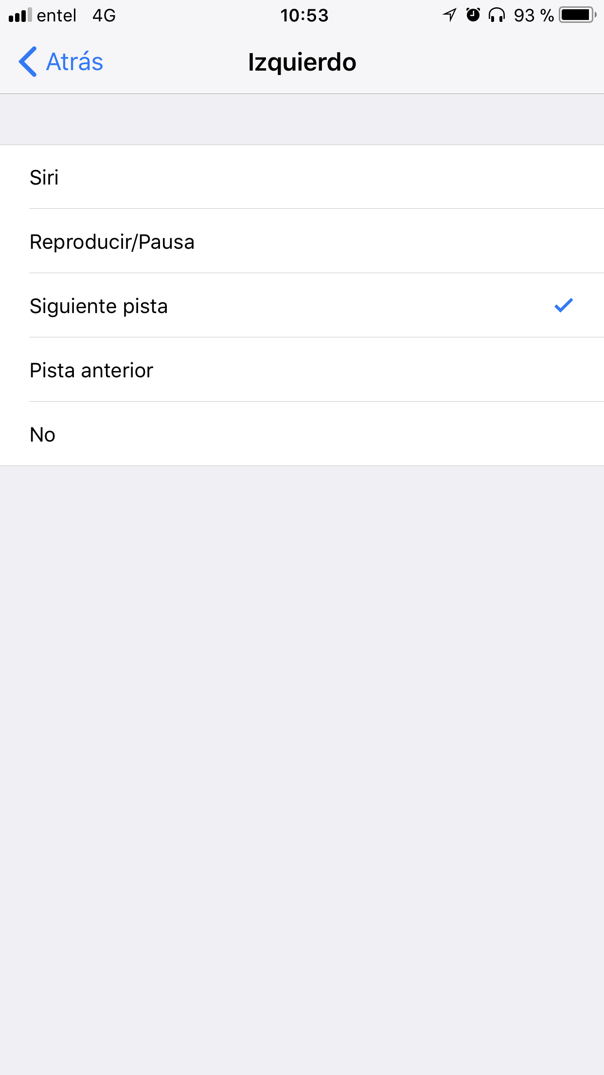 Todo lo anterior podrás asignarlo al audífono derecho o izquierdo, por ejemplo en el AirPod derecho podrás asignar que avance a la siguiente pista, mientras con el izquierdo podrás asignar la opción para pausar la reproducción u otra que tu elijas.