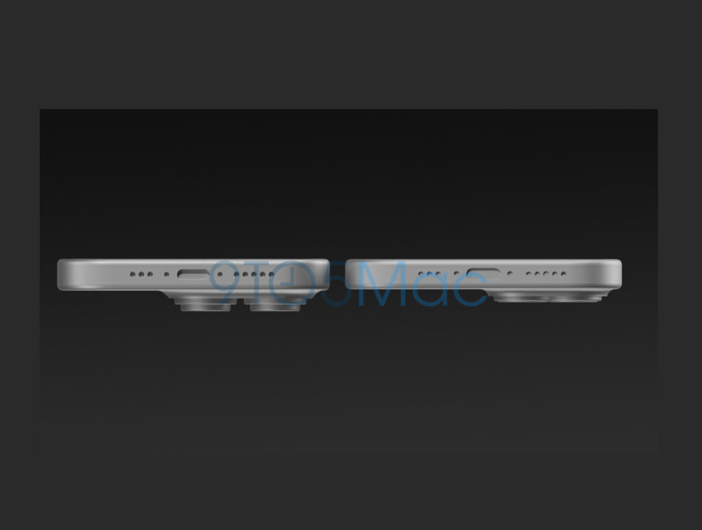 Ahora te dejaremos otro render. La única diferencia es que se invierten. Es decir, iPhone 15 «común» a la izquierda y el 15 Pro a la derecha: