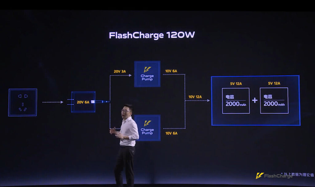 El sistema de iQOO ejecuta 20V-6A para un total de 120 W de potencia. Utiliza diseños de baterías de doble celda, como lo hacen la mayoría de las tecnologías de carga rápida, así como un bloque de carga patentado. Es decir, la corriente se convierte de 20V-6A a 10A-12V, dividida en dos circuitos iguales a 5A-12V que cargan dos celdas de 2.000 mAh. Cualquier teléfono con esta solución debe venir con capas adicionales de grafito y un sistema de refrigeración interna adicional para mantener la temperatura baja y proteger la placa base.