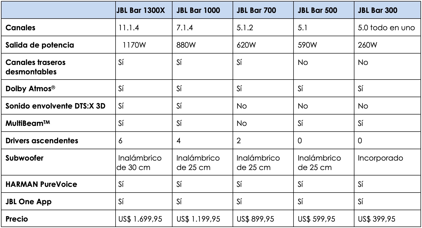 Especificaciones técnicas de las nuevas barras JBL Bar