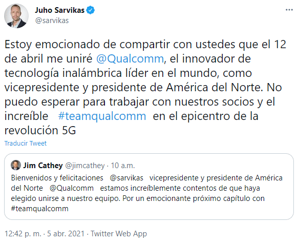 A partir del próximo lunes 12 de abril, Juho Sarvikas pasará a ser parte del gigante de Qualcomm donde ejecutará el cargo de presidente de Qualcomm Norte América.