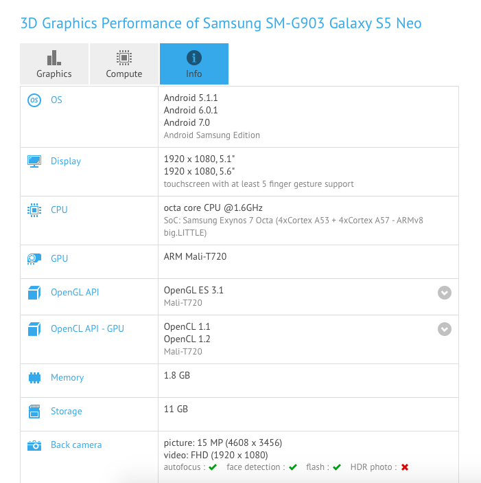 Samsung al parecer no quiere olvidar muchos modelos en lo que a la actualización a Android Nougat, y es que hasta el Galaxy S5 Neo al parecer recibirá la actualización por lo que se pudo ver en GFXBench.