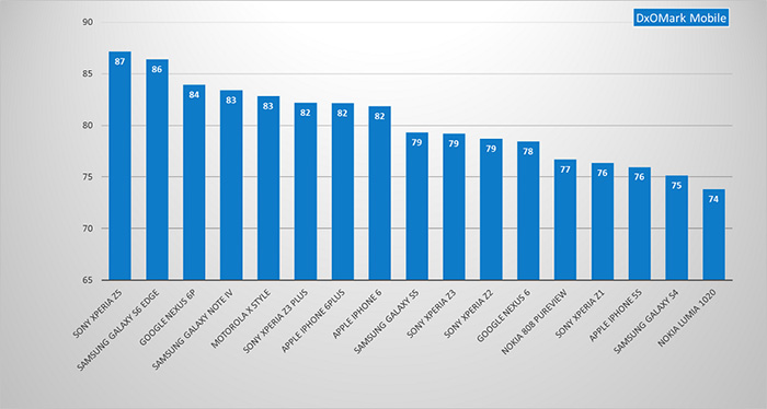 Se puede apreciar que la cámara del Xperia Z5 consigue 87 puntos, seguida por el S6 Edge, el nuevo Nexus 6P de Google y Huawei y el Samsung Galaxy Note 4. Cabe mencionar que, entre los líderes, no existe ningún dispositivo de Apple, siendo el iPhone 6 el primero en aparecer en el ranking recién en el sexto puesto, algo que no estábamos acostumbrados a ver.