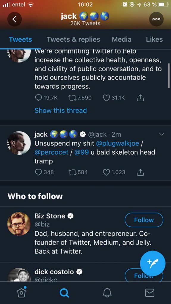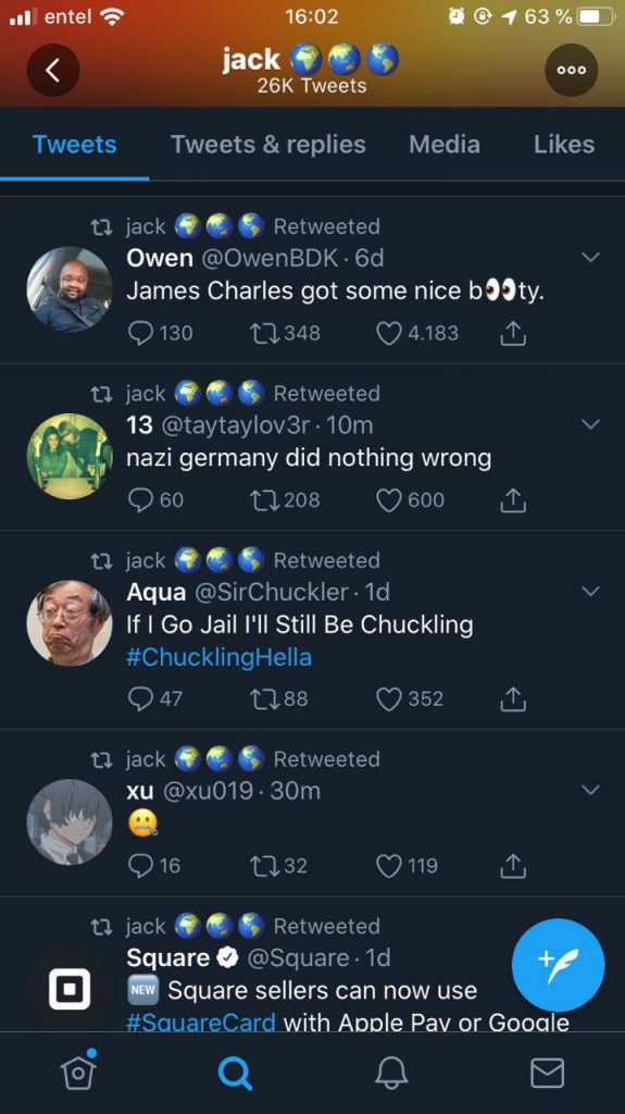 La vida tiene muchas ironías y ésta, sin duda, es una de ellas. Resulta que el día de hoy la cuenta de Twitter de Jack Dorsey, el CEO de la misma red social, resultó ser hackeada. Esto resultó en una serie de tuits racistas, otros ofensivos y finalmente en una «invitación» a un canal de Discord.